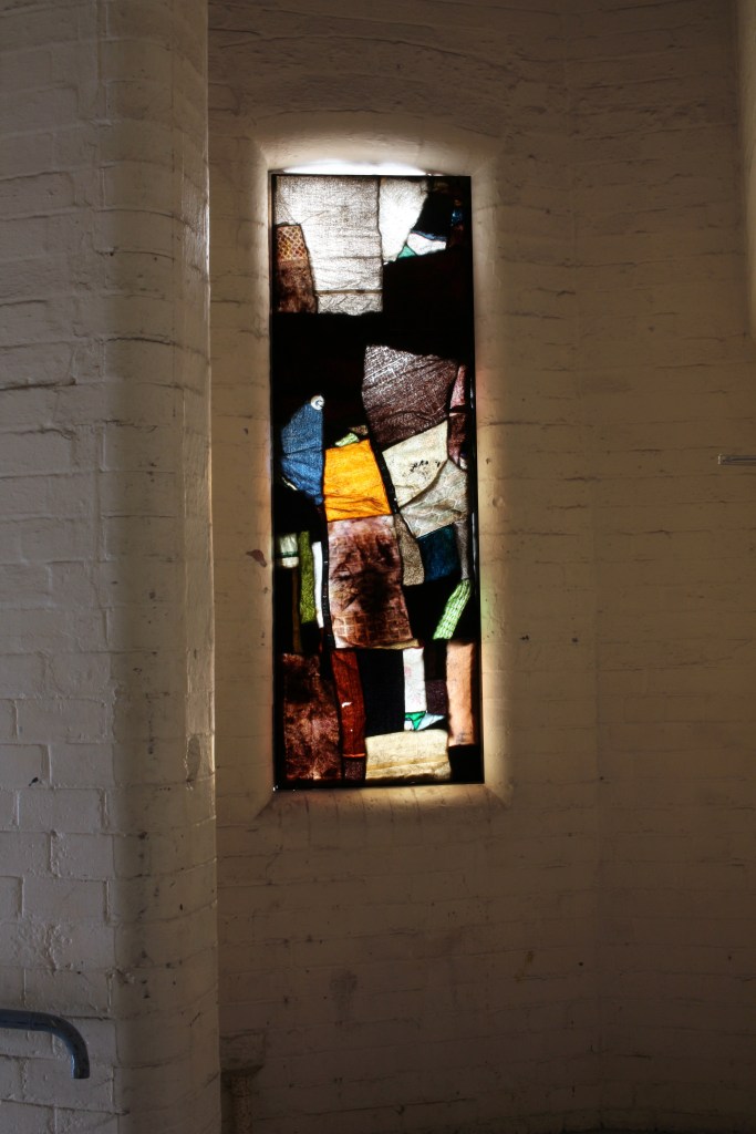 All stained rag window works above shown along the stairwells leading up to the rest of the show in the attic space, all made with rags, thread, wax, and thanks to Alice Dolan & Tyrezone in Nottingham, supported by New Contemporaries London
