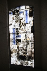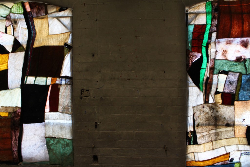 Stained Rag Window No. 6, rags, thread, wax, Supported by New Contemporaries, London, with thanks to Tyre Zone in Nottingham, July 2017
