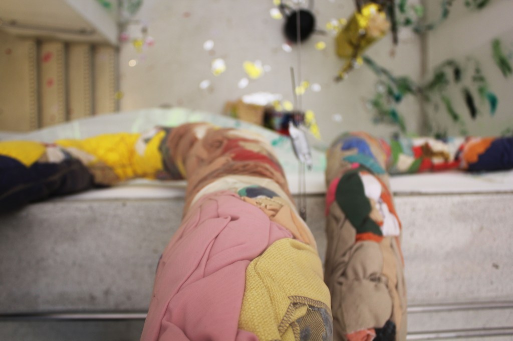Sheersnake, fabrics, thread, Installed at The Petting Zoo, group show curated by Sally Hackett, Katarina Sylvan & Pablo Rodriguez Blanco at The Hockney Gallery, Royal College of Art, London, February 2019