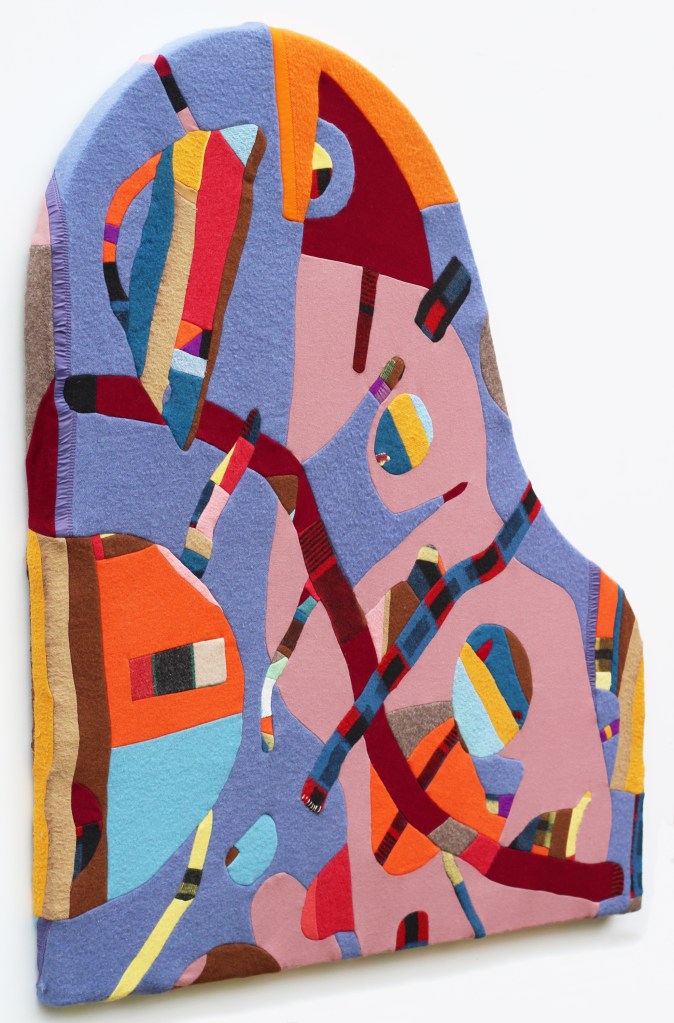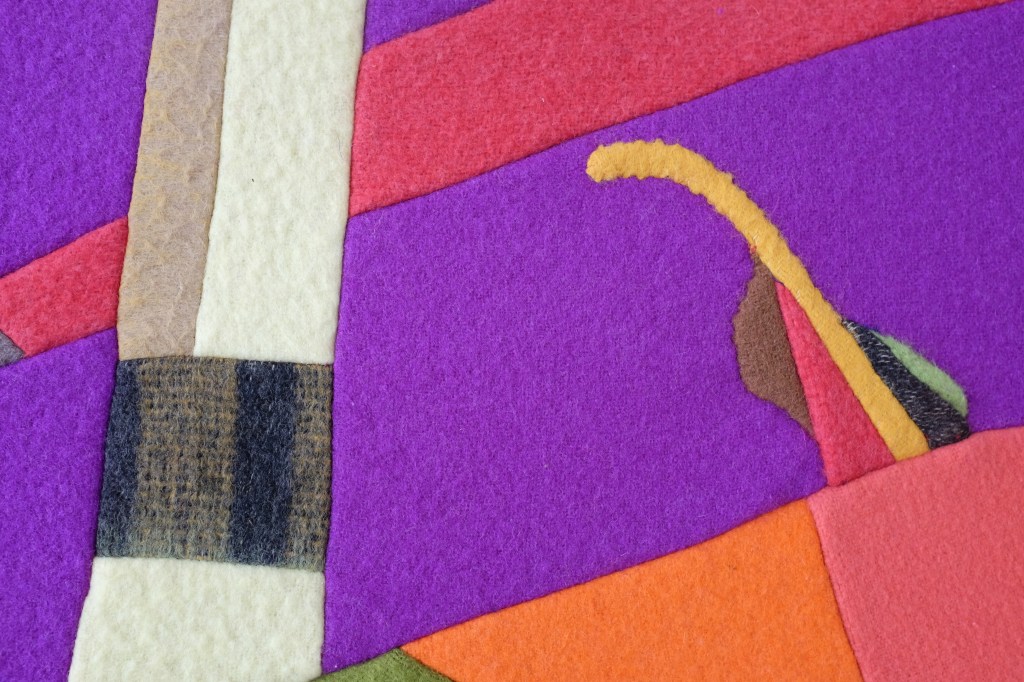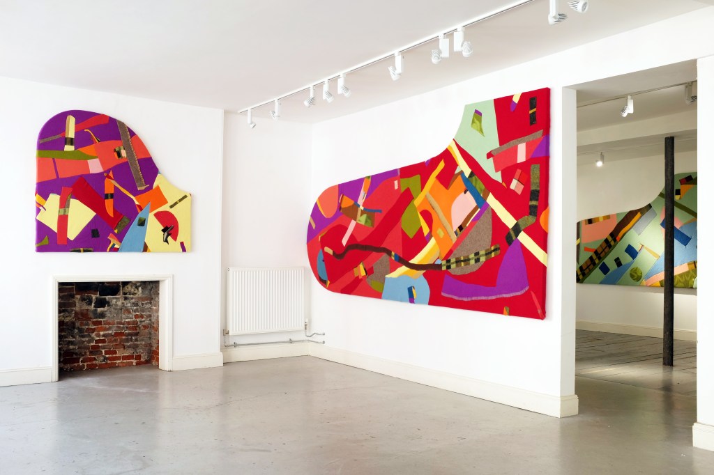 The blankets looked humorous, humble, and vulnerable with their vintage colour palettes, but had a deep strength in their dense wool and latticed structures. I wanted to bring the blankets, which usually have a secondary role in protecting the pianos, to the forefront. To give the blankets the care and attention I thought they deserved I stitched them together and stretched them around bespoke frames.To make the frames, we made templates out of flexible wood directly from four different sized pianos that my dad had been restoring. The titles of these blankets point to questions around my identity, but at the same time reflect on what these pieces are and where they sit in between sculpture, painting, textiles, and craft. They’re named after the model of piano on which their frames were moulded: two Steinways and two Challens.