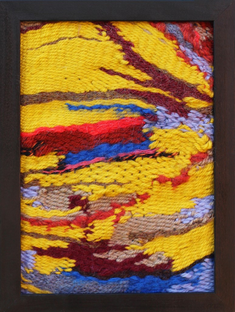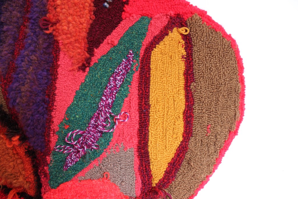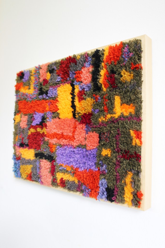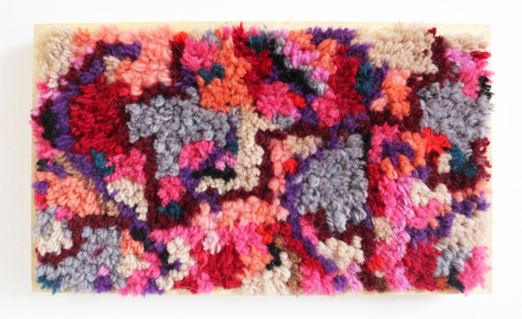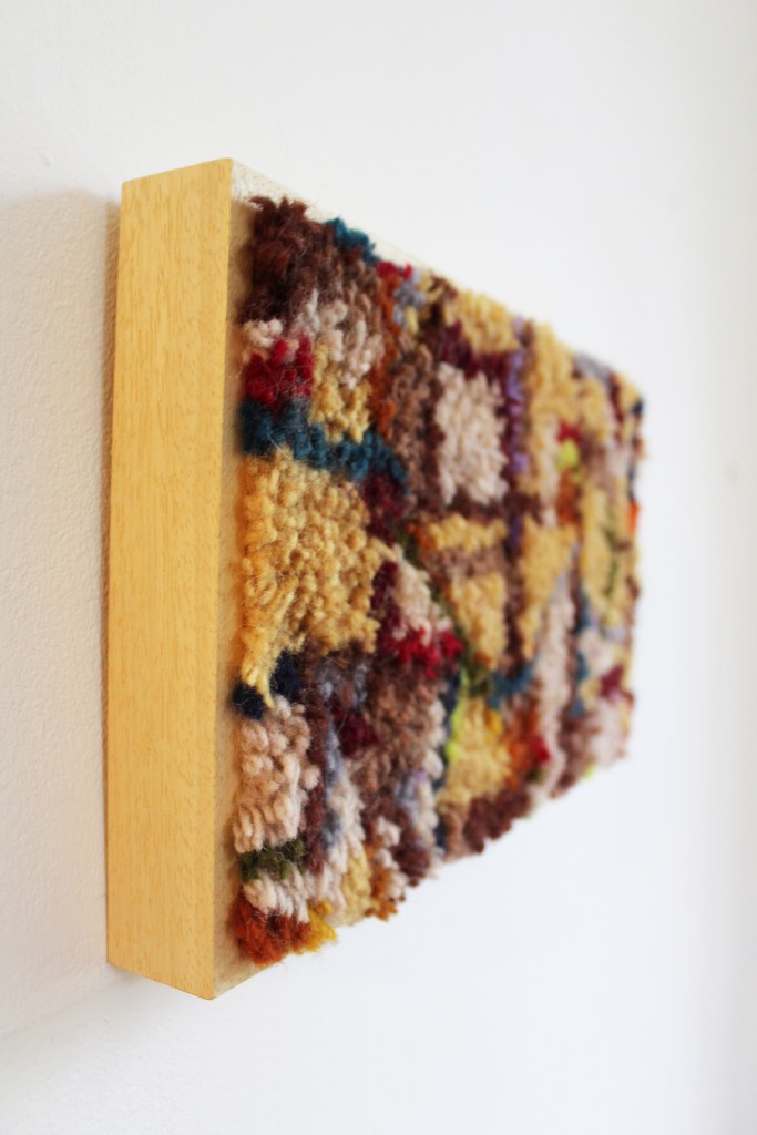 Creamy goodness November 2022, wool, wood, latch hook canvas