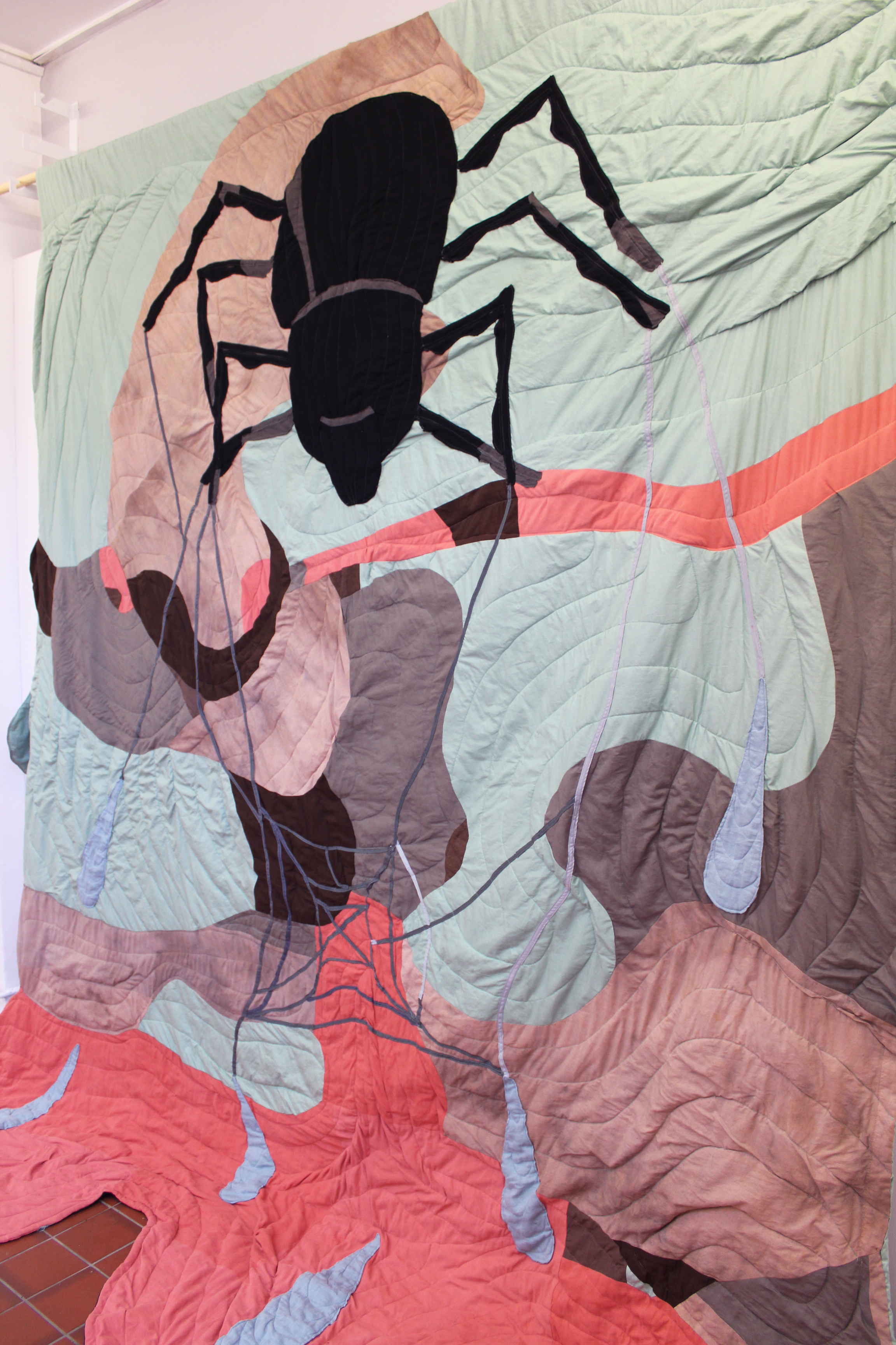 90% of the spiders we see are female. These ancient weavers produce silk, growing, building and weaving complex structures that are five times stronger than steel. The web becomes a foundation for movement, survival and protection. Giller and Robinson take this therapeutic dimension of textile crafts – working, spinning, weaving and winding – as a starting point for exploring emotion. Another key reference point is dreaming and making sense of the strange and often exhausting emotions and stories of the unconscious mind. The works act as a form of textile therapy, giving form to unprocessed emotions the way crafts transform and give meaning to raw materials.