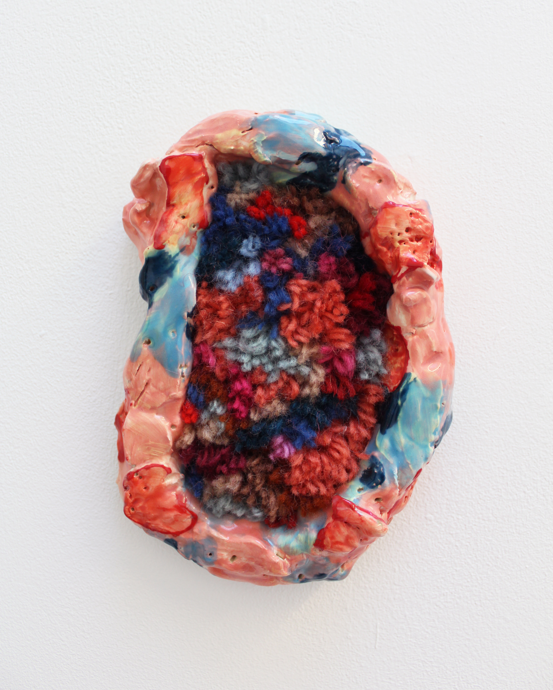 Don’t you try (mouth loom), glazed ceramic, metal, linen thread, wool