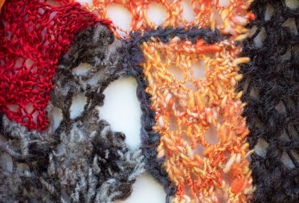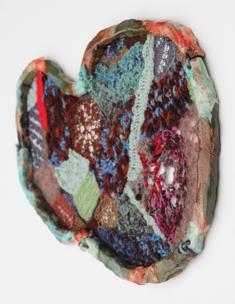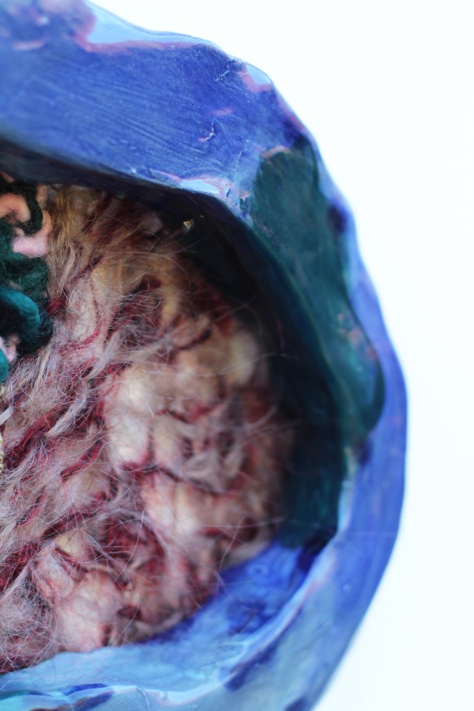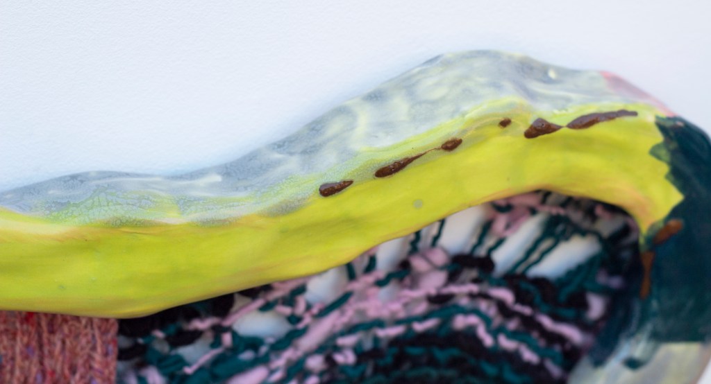 It’s own logic Glazed ceramic, homespun wool, mixed wool, embroidery thread, glue, nails, June 2023
