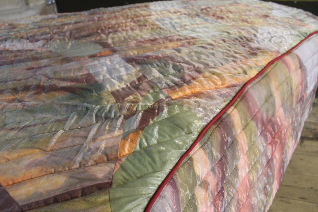 Selection of Ceramic Knit Works & Painted piano cover, dyes, linen, piping, wadding, thread, photos by Noah Da Costa. Work pictured to left in above photo by Will Cruickshank.