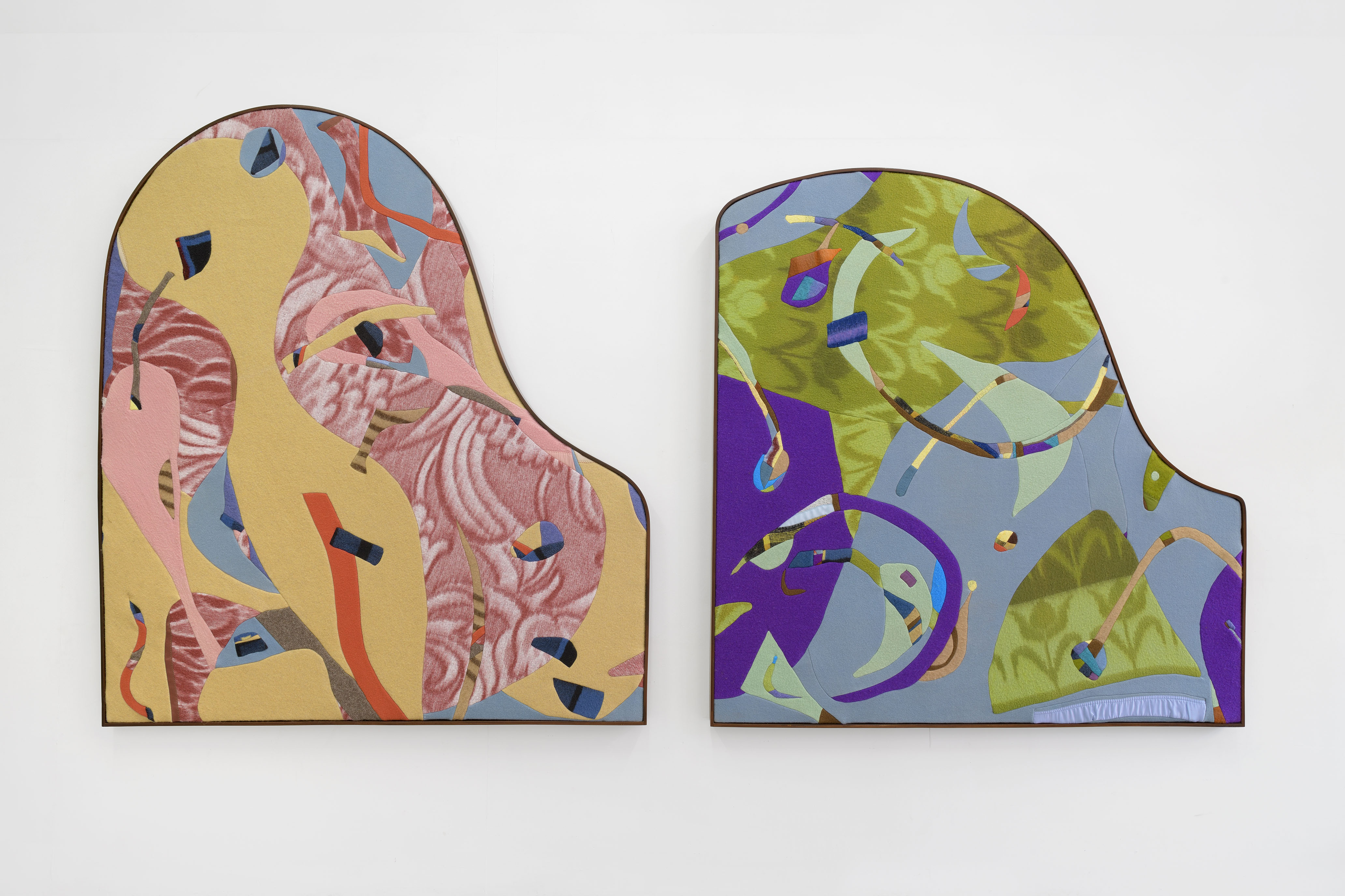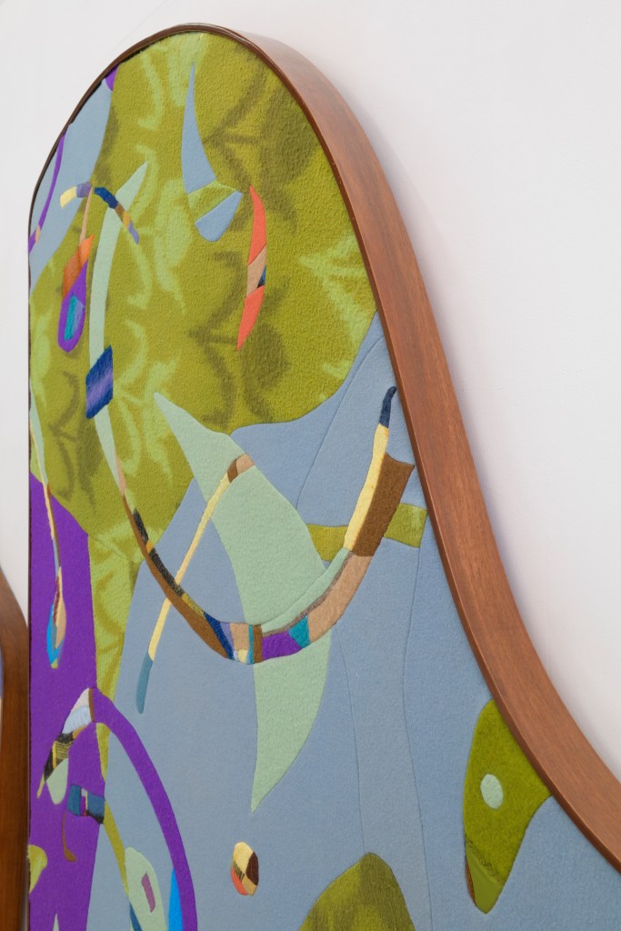 To be in a soft space (left) & Each line to be different (right), Wool & nylon blankets, thread, wood