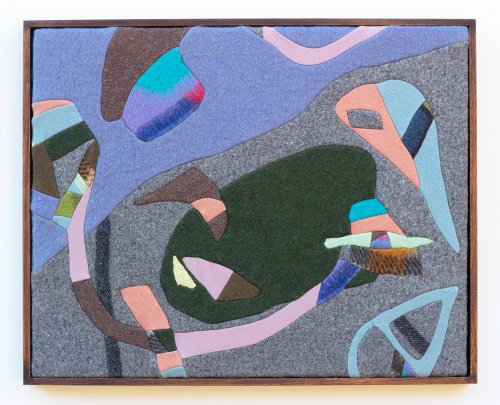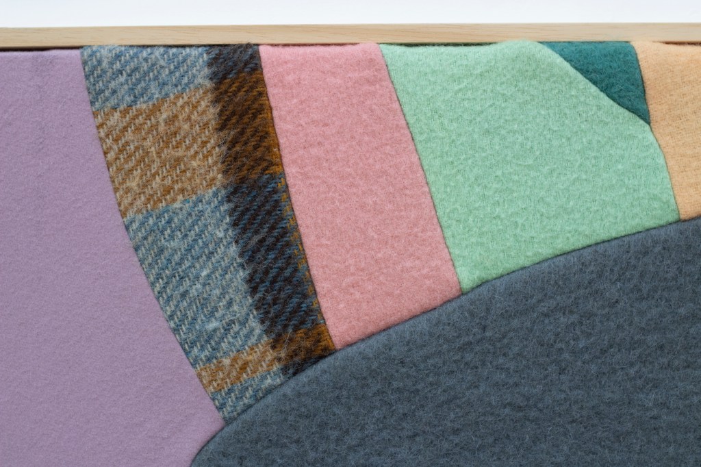 Part of the story, woollen fabrics, thread, wood, November 2024